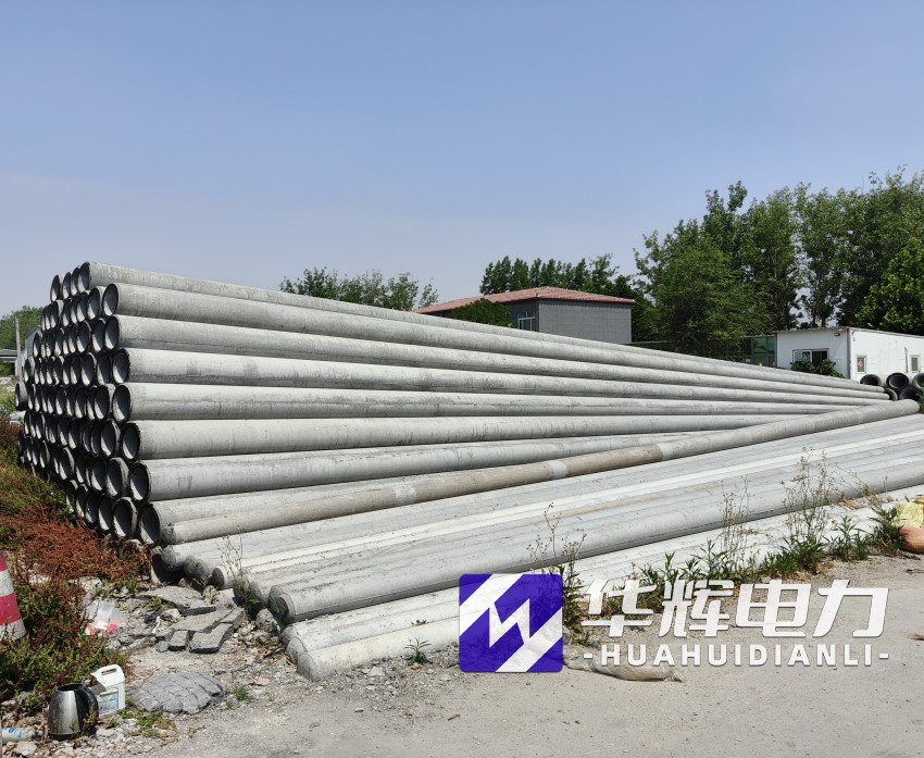 8米涞源水泥电线杆通常采用钢筋混凝土离心成型工艺,杆体呈锥形结构,梢径150mm-190mm,根径230mm-270mm,壁厚40mm-50mm。根据标准GB/T4623-2014,产品混凝土强度等级不低于C40,主筋采用HRB400级钢筋,配筋量根据抗裂弯矩要求设计,标准抗裂弯矩可达12-18kN·m,破坏弯矩不小于24kN·m。杆体重量约0.5-0.8吨,运输安装便捷,适合人工或小型机械施工。
